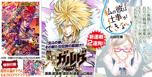 新連載『私の彼は仕事ができない』が始まりました! センターカラー28p。 もし無職だった彼が自分の職場の後輩になったら——。 なんだかんだいって一生働かなければならない人生にグサリと刺さる「お仕事ラブストーリー」!! ↑公式サイトより 久しぶりの青年誌での連載で緊張してます。 雑誌内で浮きまくりかもしれませんが頑張ります。 最近会う人会う人、「あなたにとって仕事ができないってどんな人だと思いますか?」 って聞いてます。 私と会った方はうっとーしがらずに答えてあげてくださいませ! ちなみに実妹の山田こたろも横山了一先生とのタッグで 『漫画専門学校生の青春』連載中です。 絵(も顔も)似てない姉妹ですが共々よろしくお願い致します。 (姉妹別々で載せてくれるゼノン太っ腹) (山田姉妹としては、たぶん夏頃始動予定です) 今月号は原先生書き下ろしももクロ クリアファイルも付いてます。 コミックゼノンは毎月25日発売。 よろしくお願い致します! ゼノン公式サイトはこちら http://www.comic-zenon.jp/index.html |